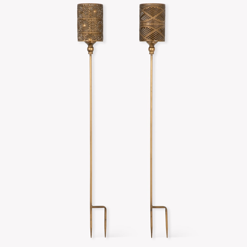 Create an enchanting atmosphere for garden gatherings with these beautiful brass garden lanterns This set of two is designed for tea lights, and each one is handmade from galvanised steel with an Antique Brass finish that will naturally weather and rust over time, adding to its character and charm.