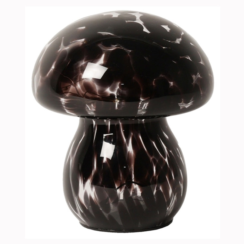Cute little mushroom shaped LED lamps in brown and white glass. These portable battery operated glass lamps are perfect for lighting up hard to light up spots on shelves or any dark corner.